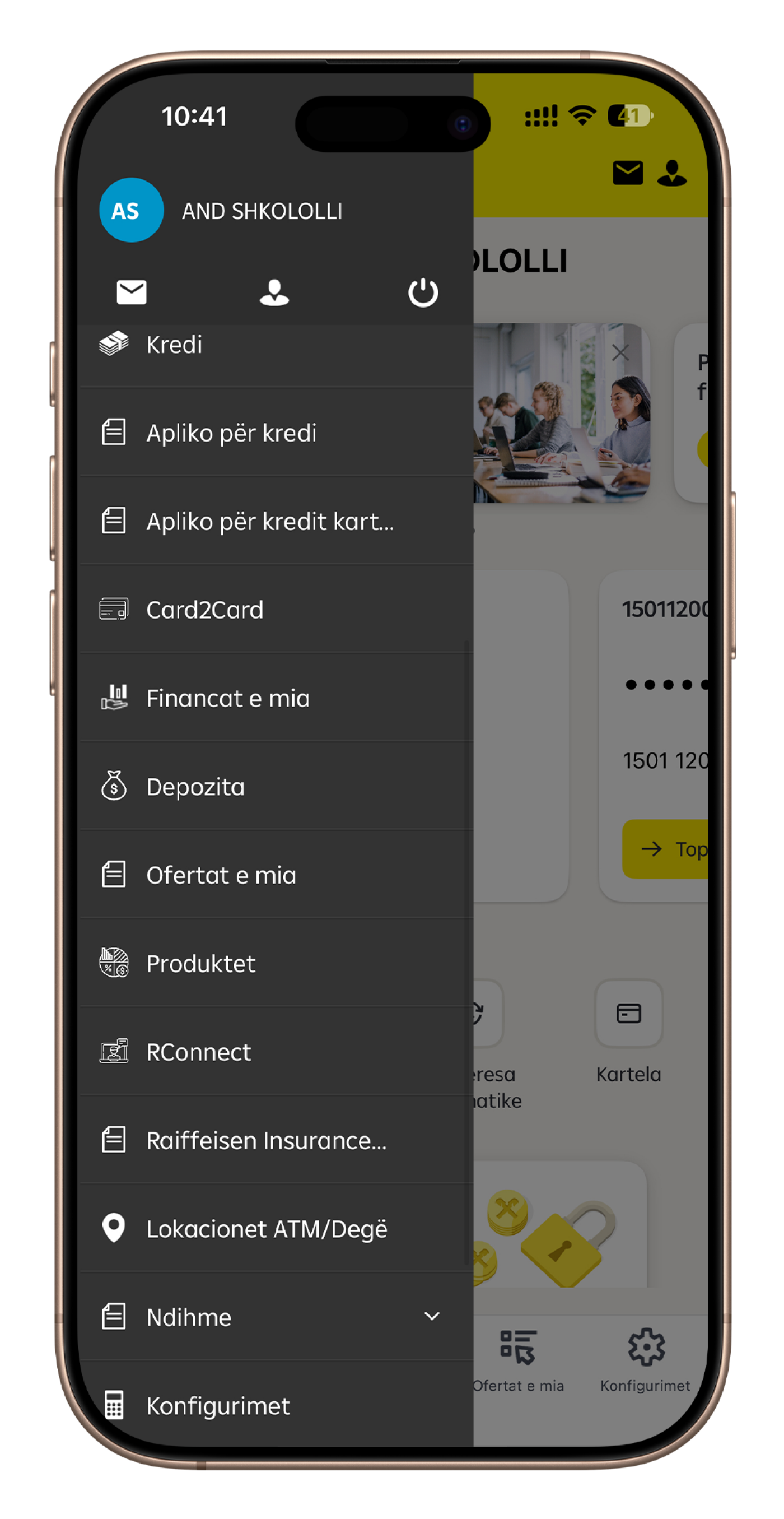 Në aplikacionin mobil bankar, mund të kyçeni me një siguri maksimale duke përdorur gjurmët e gishtërinjve ose teknologjinë e njohjes së fytyrës.