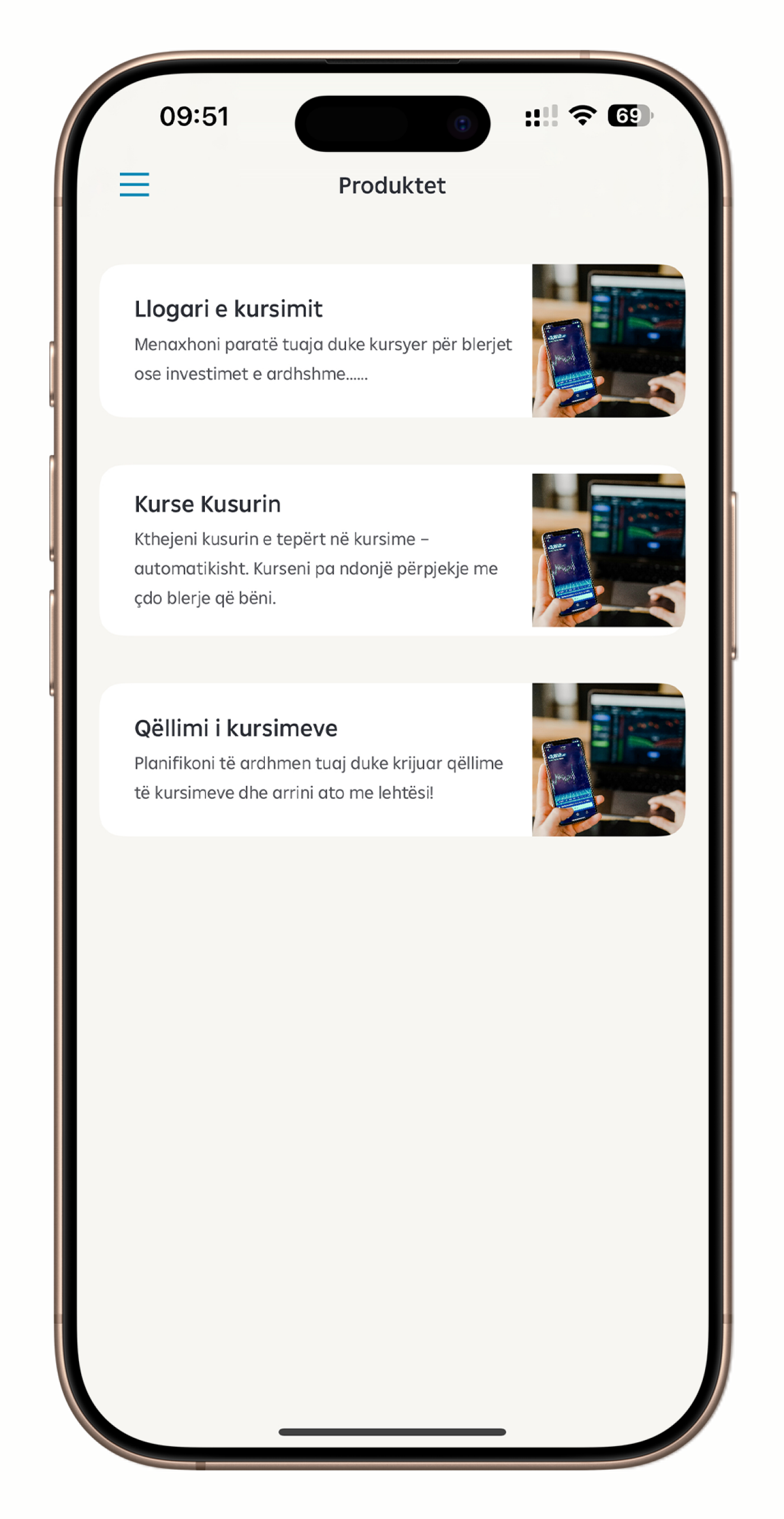 Në Aplikacionin mobil bankar, mund të kryeni shërbimet bankare pa pasur nevojë të shkoni në degë.
