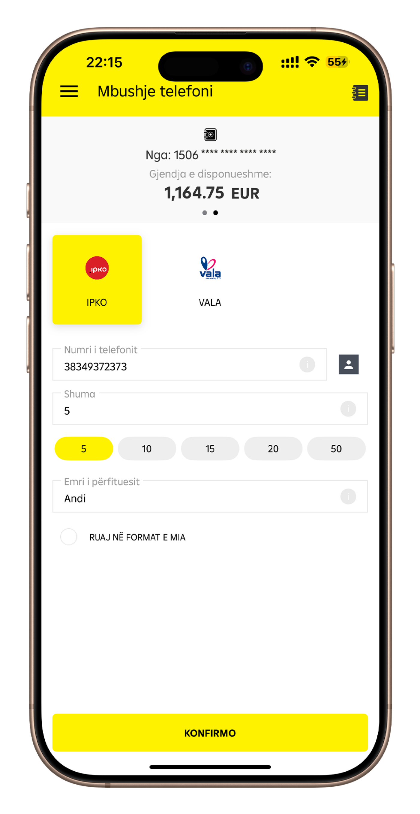 - Bllokimin e kartelës përmes aplikacionit në rast të humbjes