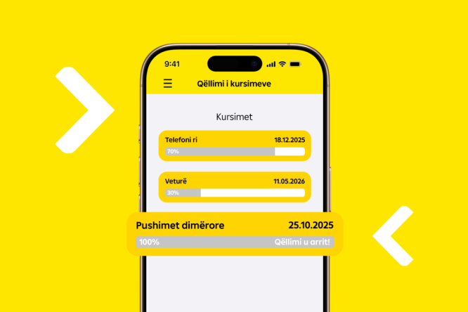 Kursimi është thelbësor për të ndërtuar një të ardhme financiare të sigurt dhe për t'i bërë qëllimet e tua realitet. Me Aplikacionin mobil bankar tani mund të hapësh llogari kursimi plotësisht online, pa pasur nevojë të vizitosh degën e bankës.